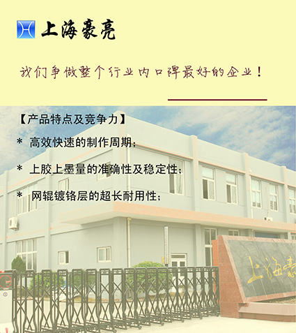 發(fā)布時(shí)間:2024-08-16 點(diǎn)擊次數(shù):1293上海豪亮機(jī)械有限公司是一家專業(yè)制造金屬網(wǎng)紋輥、鍍鉻輥、壓花輥、鏡面輥等各種輥筒的專業(yè)制輥企業(yè),產(chǎn)品廣泛用于印刷、包裝、塑膠、皮革、薄膜、膠黏制品、紙張以及各種柔性版印刷機(jī)械等行業(yè)。